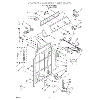 This rear panel support is the structural bracket that secures the appliance's rear cover/backguard in place. Replacing a worn or broken support restores proper alignment, helps protect internal components, and reduces vibration noise.