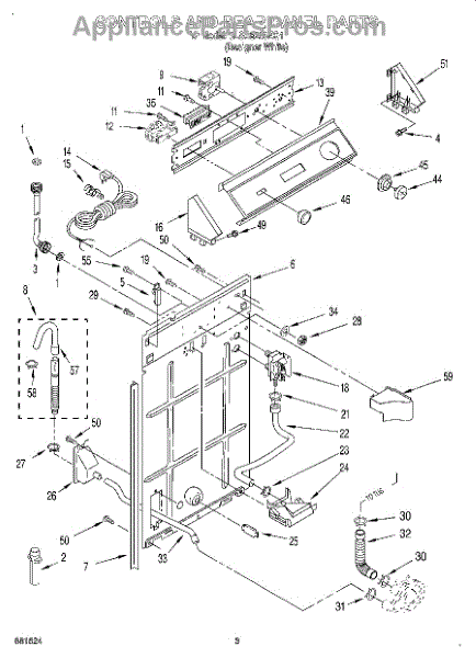 This rear panel support is the structural bracket that secures the appliance's rear cover/backguard in place. Replacing a worn or broken support restores proper alignment, helps protect internal components, and reduces vibration noise.