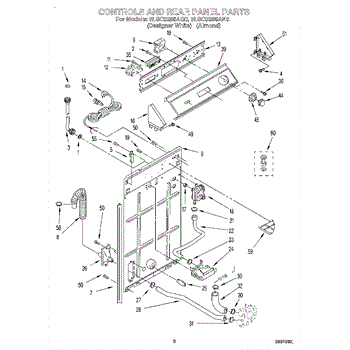 This rear panel support is the structural bracket that secures the appliance's rear cover/backguard in place. Replacing a worn or broken support restores proper alignment, helps protect internal components, and reduces vibration noise.