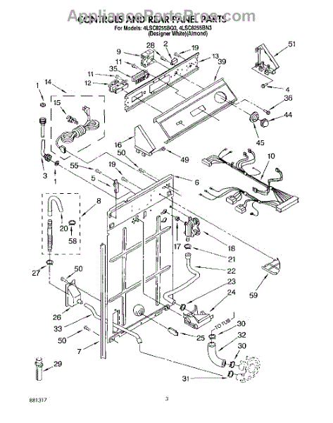 This rear panel support is the structural bracket that secures the appliance's rear cover/backguard in place. Replacing a worn or broken support restores proper alignment, helps protect internal components, and reduces vibration noise.