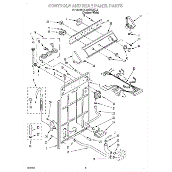 This rear panel support is the structural bracket that secures the appliance's rear cover/backguard in place. Replacing a worn or broken support restores proper alignment, helps protect internal components, and reduces vibration noise.