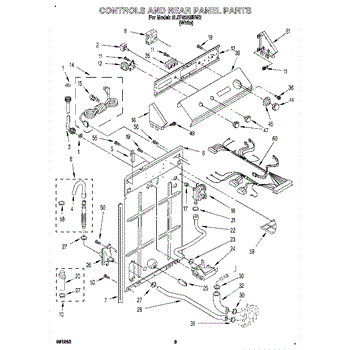 This rear panel support is the structural bracket that secures the appliance's rear cover/backguard in place. Replacing a worn or broken support restores proper alignment, helps protect internal components, and reduces vibration noise.