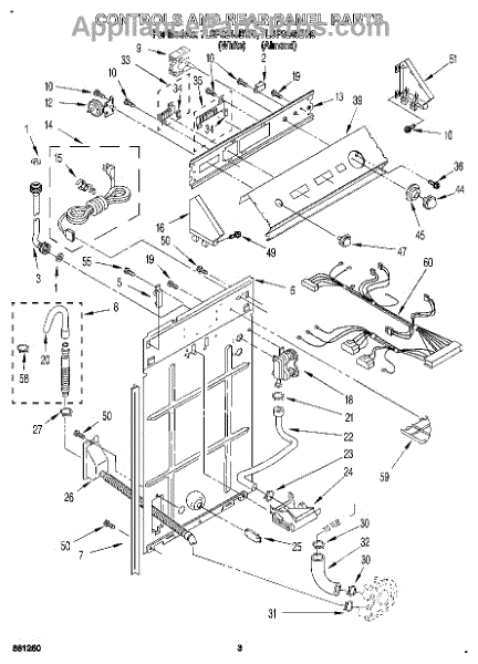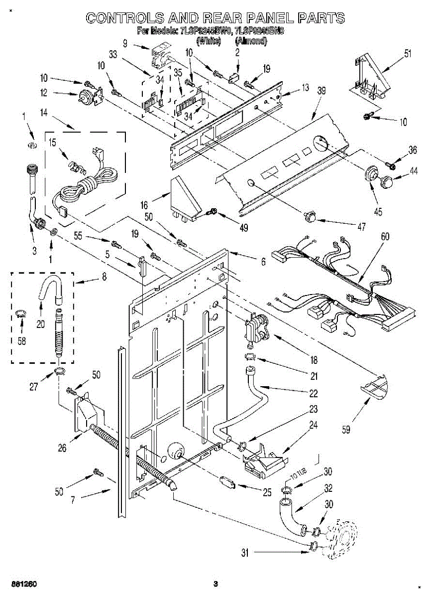 Parts for Whirlpool 7LSP9245BN0: 02 - Controls And Rear Panel Parts