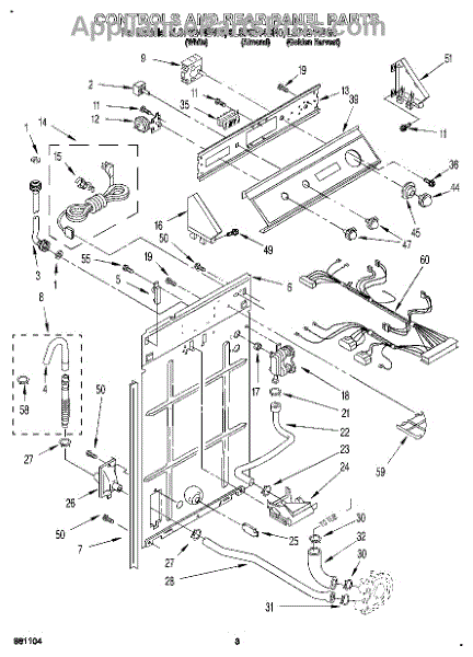 Parts for Whirlpool 8LSP6244BW0: 02 - Controls And Rear Panel Parts