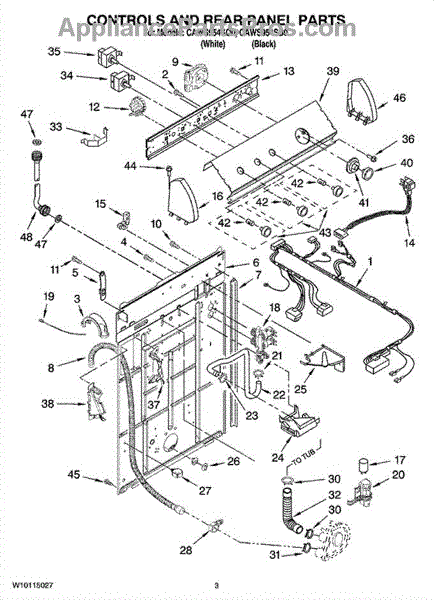The Drain Hose is an OEM part for Whirlpool washing machines. It is responsible for directing and carrying away water that is pumped out of the washer tub during drain cycles. The drain hose connects from the bottom of the washtub to the household plumbing or out the back of the machine. This washer drain hose includes the retaining clips to hold in place. Causes of a bad drain hose can include mineral deposits from hard water building up inside the hose, cracking from flexing during use, rodent damage, or general degradation from years of service. Symptoms of a faulty drain hose include:
