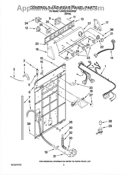 Parts for Whirlpool CAWSS16445WQ0: 02 - Controls And Rear Panel Parts