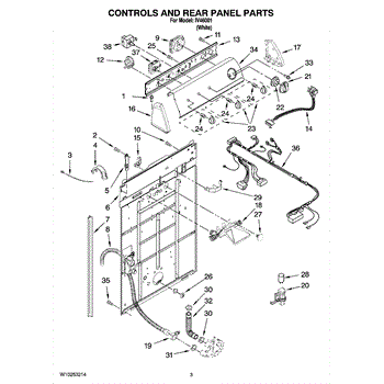 Water inlet valve assembly includes: Hot and cold inlet valves, thermistor, vacuum break and wiring harness.