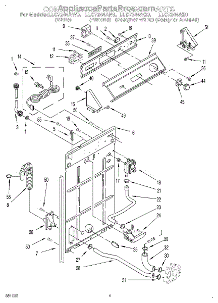 This rear panel support is the structural bracket that secures the appliance's rear cover/backguard in place. Replacing a worn or broken support restores proper alignment, helps protect internal components, and reduces vibration noise.