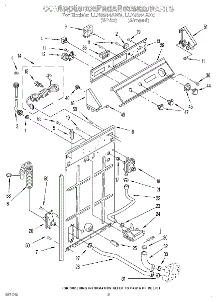 This rear panel support is the structural bracket that secures the appliance's rear cover/backguard in place. Replacing a worn or broken support restores proper alignment, helps protect internal components, and reduces vibration noise.