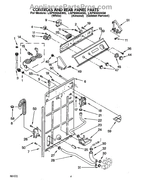 Parts for Whirlpool LSP9355AG0: 02 - Controls And Rear Panel Parts