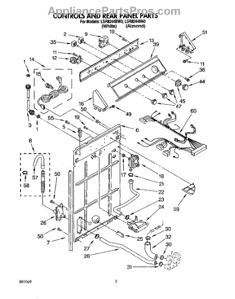 Parts for Whirlpool LSR8244BW0: 02 - Controls And Rear Panel Parts