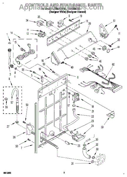 This rear panel support is the structural bracket that secures the appliance's rear cover/backguard in place. Replacing a worn or broken support restores proper alignment, helps protect internal components, and reduces vibration noise.