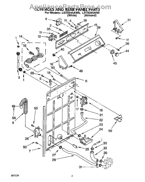 Parts for Whirlpool LST9245AW0: 02 - Controls And Rear Panel Parts