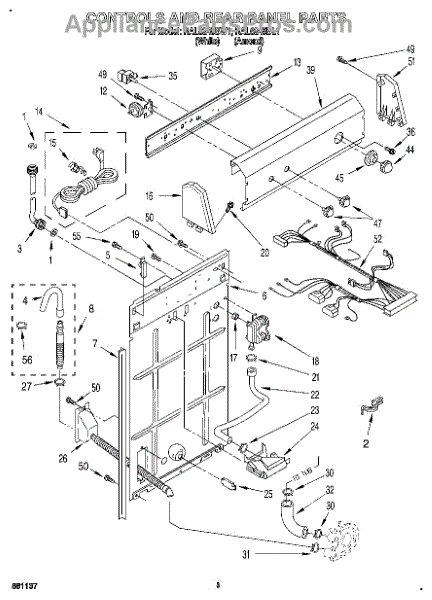 This rear panel support is the structural bracket that secures the appliance's rear cover/backguard in place. Replacing a worn or broken support restores proper alignment, helps protect internal components, and reduces vibration noise.