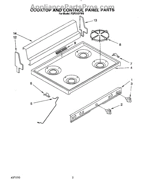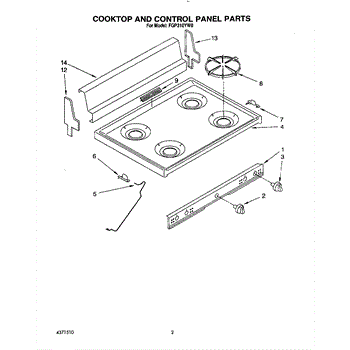 Parts for Whirlpool FGP310YL0: 02 - Cooktop And Control Panel, Lit / Opti Parts
