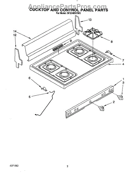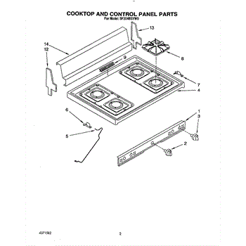 Parts for Whirlpool SF304BSYG0: 02 - Cooktop And Control Panel, Lit / Opti Parts