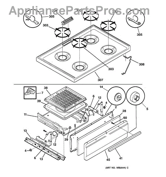 Parts for Ge RGB506PYWH: 02 - Cooktop & Drawer Parts