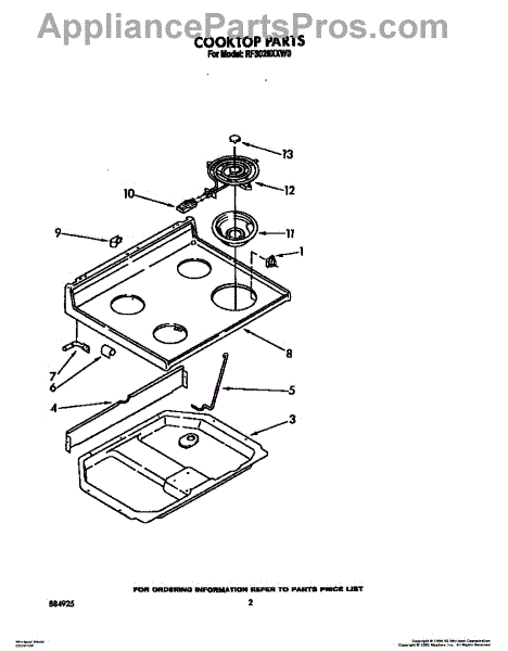 The Stove Top Drip Pan is an OEM replacement part for Whirlpool ranges. It is the shallow metal pan located below the stove burner elements that collect grease and food particles. The drip pan helps direct spills and drips away from the burner area to the bottom drawer for easy cleanup. Symptoms of a bad drip pan include: