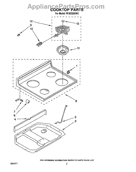 Parts for Whirlpool RF3020XXN2: 02 - Cooktop, Lit / Optional Parts