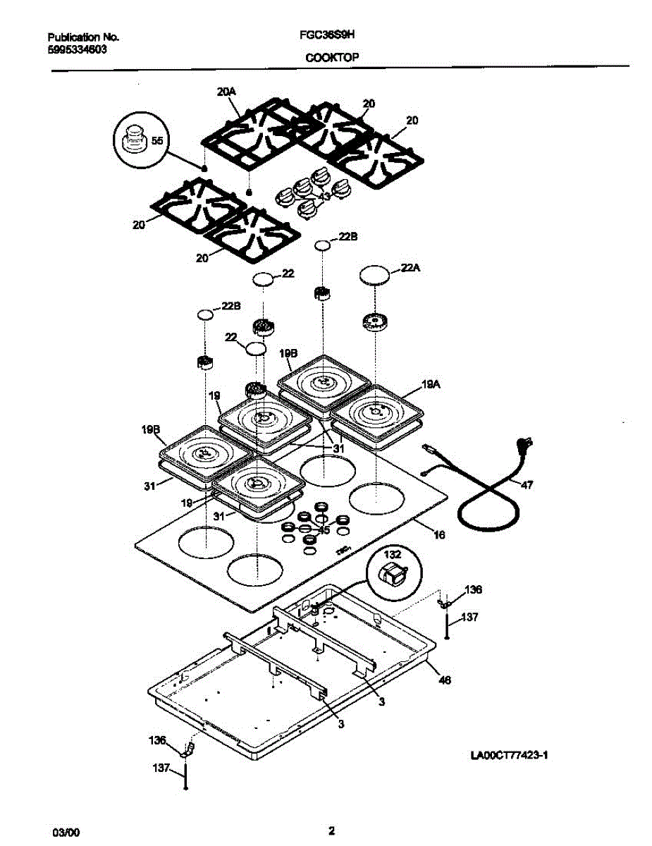 Strain relief retainer secures electrical cables at the cooktop connection point. Replace if cracked, broken, or missing to protect wiring integrity.