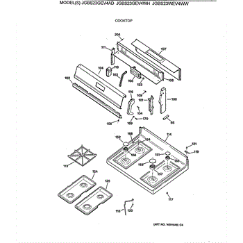 Parts for Ge JGBS23GEV4AD: 02 - Cooktop Parts