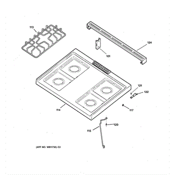 Parts for Ge RGB501PPW1WH: 02 - Cooktop Parts