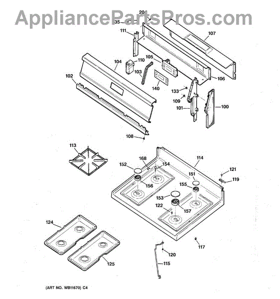 Parts for Ge RGB533WEW3WW: 02 - Cooktop Parts