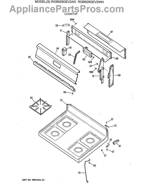 Parts for Ge RGB628GEV2WH: 02 - Cooktop Parts