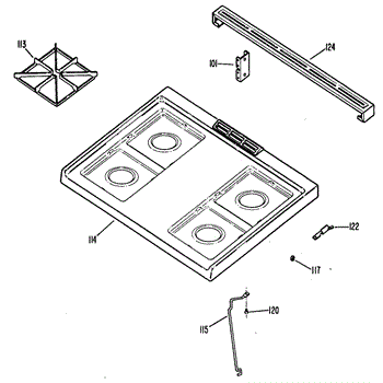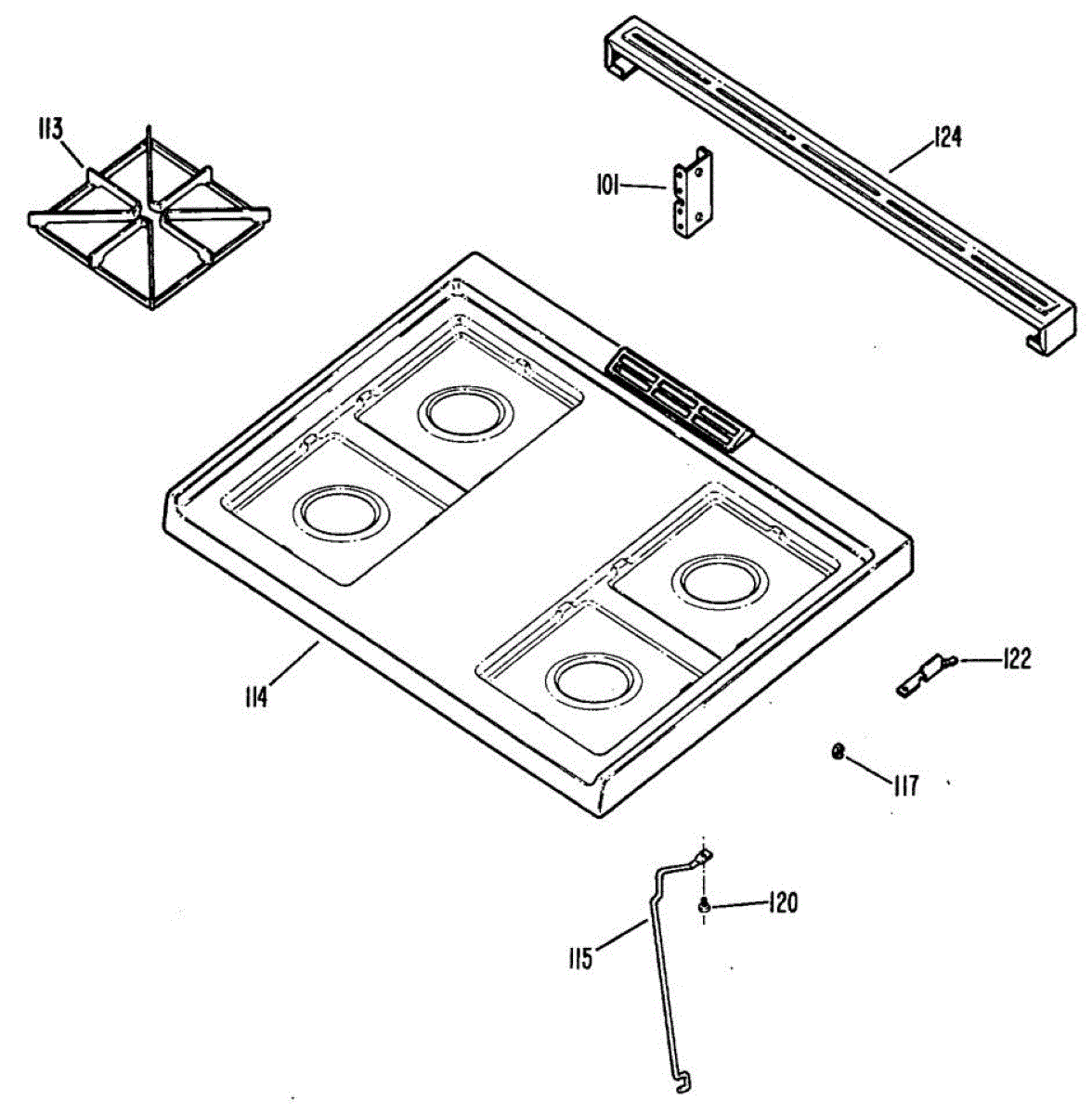 Left hinge guide secures and props up your range cooktop when lifted for cleaning or service. Replace if cracked, broken, or missing to restore secure support.