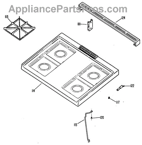 Screw and washer assembly for securing cooktop and internal range components. Replace if missing, rusted, stripped, or damaged during appliance repair.