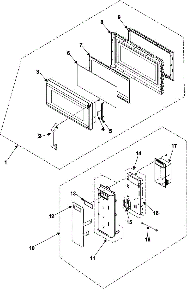 Complete door assembly for microwave ovens. Replaces cracked, damaged, or broken doors that no longer close securely. Includes frame and glass panel.