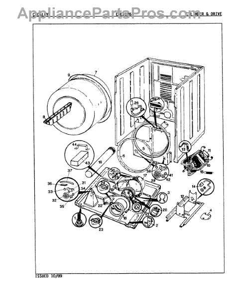 Right hand side. Used most Admiral, Crosley, Norge, and Magic Chef dryers. Includes glide and felt pad.