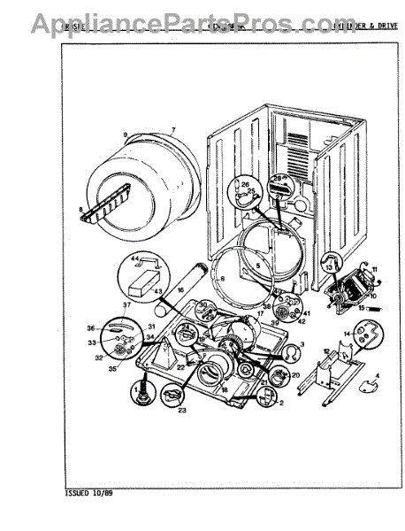 This replacement idler pulley keeps the drive belt tight and tracking correctly so the drum can rotate smoothly. It restores quiet, consistent operation when the original pulley is worn or seized and causing belt slippage or noise.