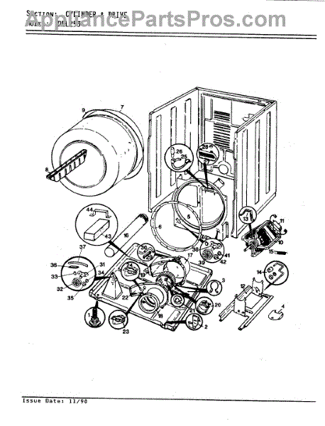Right hand side. Used most Admiral, Crosley, Norge, and Magic Chef dryers. Includes glide and felt pad.