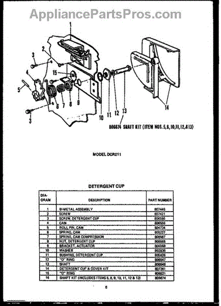 Parts for Amana DCR211: 02 - Detergent Cup Parts