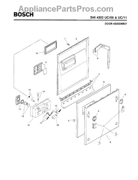 Parts for Bosch SHI4302 UC/06 -FD8002: 02 - Door Assembly Parts