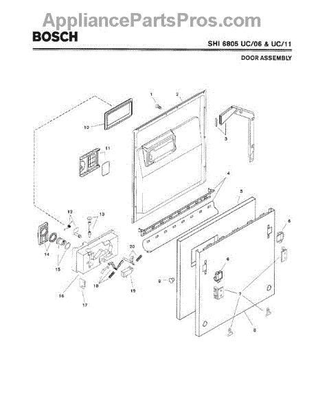 Parts for Bosch SHI6805 UC/11: 02 - Door Assembly Parts
