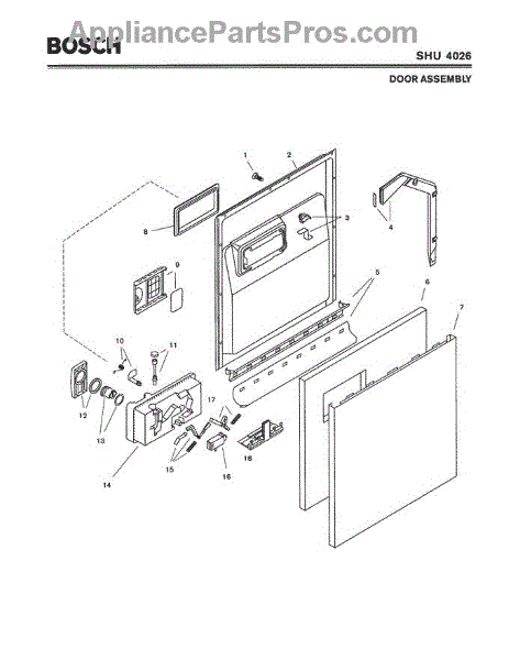 Parts for Bosch SHU4026 UC/06: 02 - Door Assembly Parts