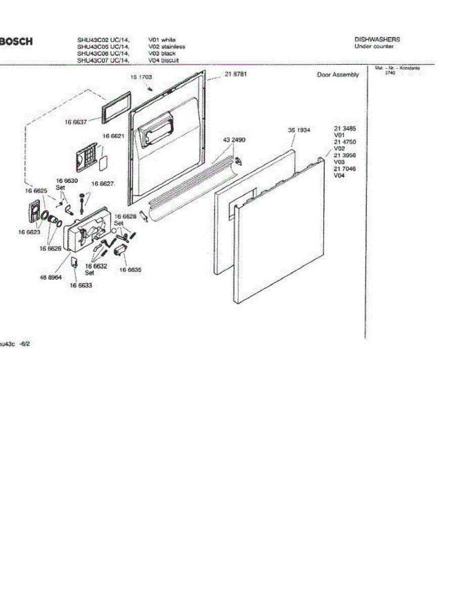 Parts for Bosch SHU43C07 UC/14 (FD 8211-): 02 - Door Assembly Parts