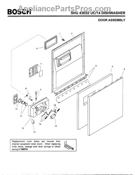 The Rinse Aid Door (with Gasket) is an OEM replacement part for Bosch dishwashers. It is responsible for covering and sealing the rinse aid dispenser. Problems with a rinse aid door can cause leaks during washing.