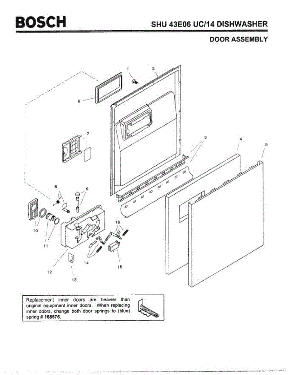 This inner door is the interior panel for a dishwasher door that protects internal components and provides a finished inside surface. Replacing a damaged inner door restores proper sealing and appearance. What it does:
