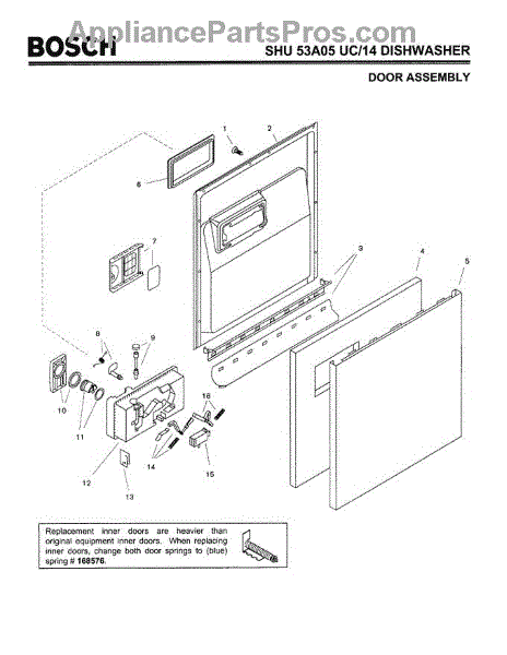 The Rinse Aid Door (with Gasket) is an OEM replacement part for Bosch dishwashers. It is responsible for covering and sealing the rinse aid dispenser. Problems with a rinse aid door can cause leaks during washing.