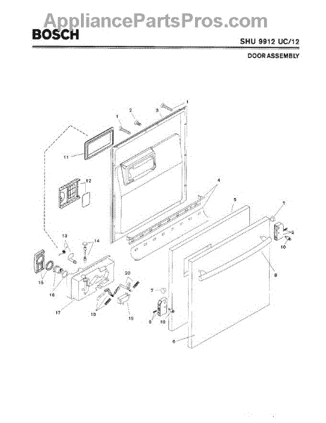 The Rinse Aid Door (with Gasket) is an OEM replacement part for Bosch dishwashers. It is responsible for covering and sealing the rinse aid dispenser. Problems with a rinse aid door can cause leaks during washing.