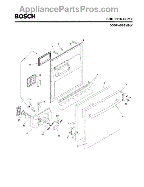 The Rinse Aid Door (with Gasket) is an OEM replacement part for Bosch dishwashers. It is responsible for covering and sealing the rinse aid dispenser. Problems with a rinse aid door can cause leaks during washing.