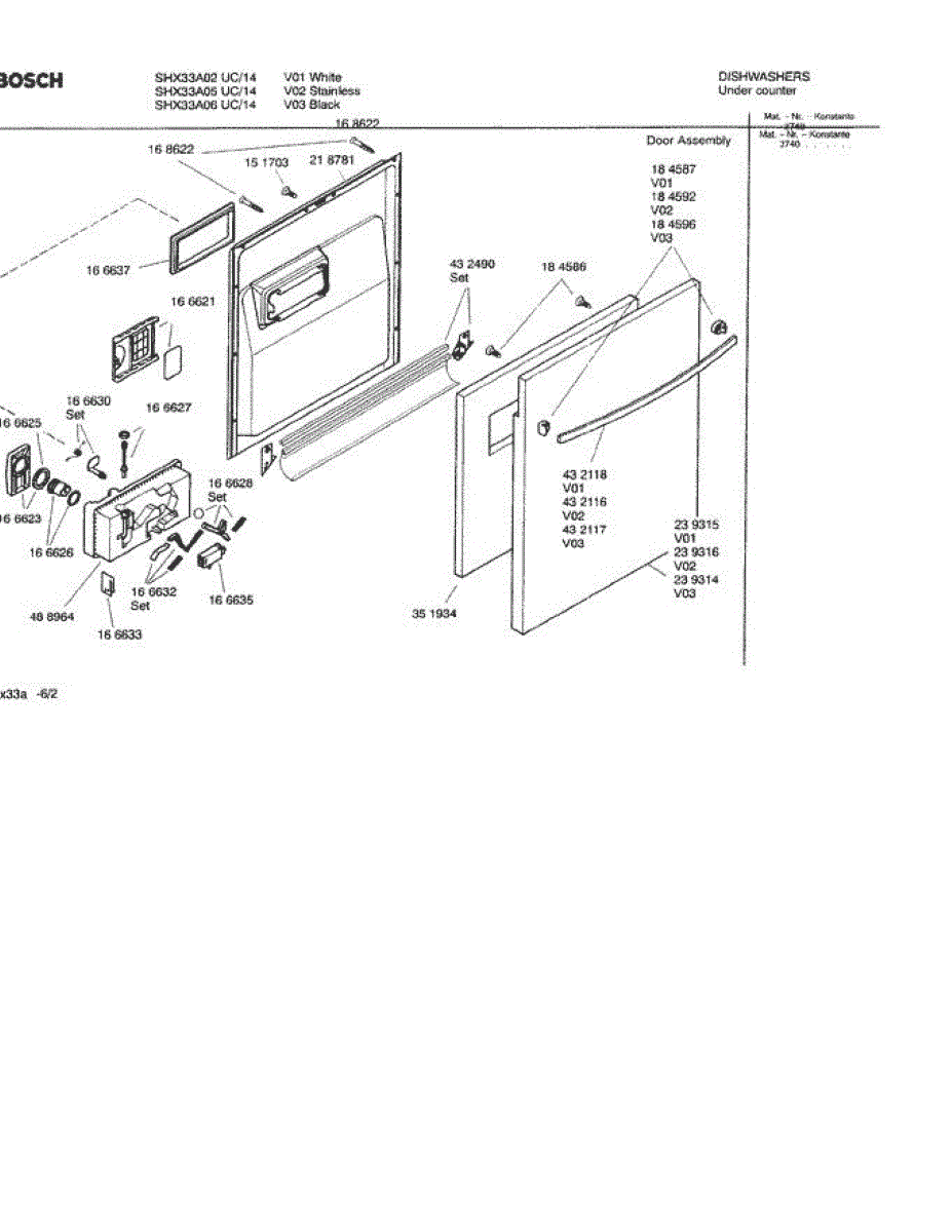 The Screw Kit (Inner Door) is an OEM part for Bosch dishwashers. It is a comprehensive kit that includes 6 screws required for securing and maintaining the inner door assembly of the dishwasher.