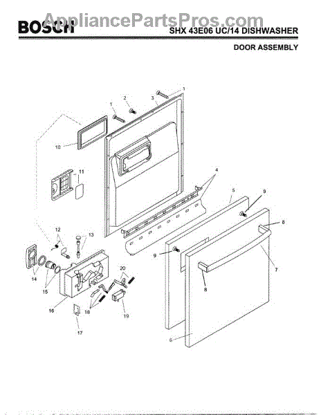 The Rinse Aid Door (with Gasket) is an OEM replacement part for Bosch dishwashers. It is responsible for covering and sealing the rinse aid dispenser. Problems with a rinse aid door can cause leaks during washing.