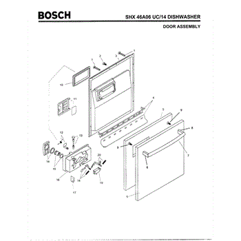 The Rinse Aid Door (with Gasket) is an OEM replacement part for Bosch dishwashers. It is responsible for covering and sealing the rinse aid dispenser. Problems with a rinse aid door can cause leaks during washing.