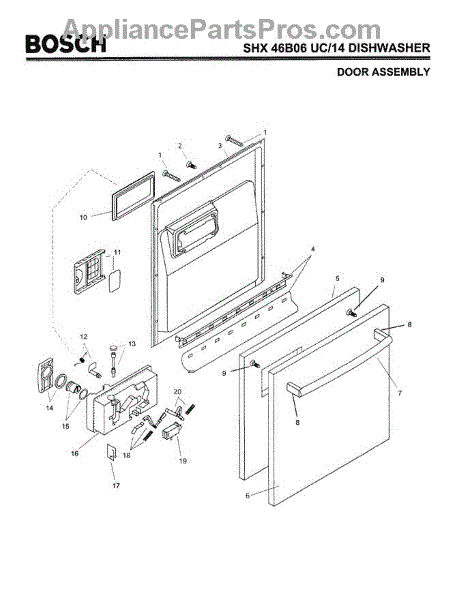 The Rinse Aid Door (with Gasket) is an OEM replacement part for Bosch dishwashers. It is responsible for covering and sealing the rinse aid dispenser. Problems with a rinse aid door can cause leaks during washing.