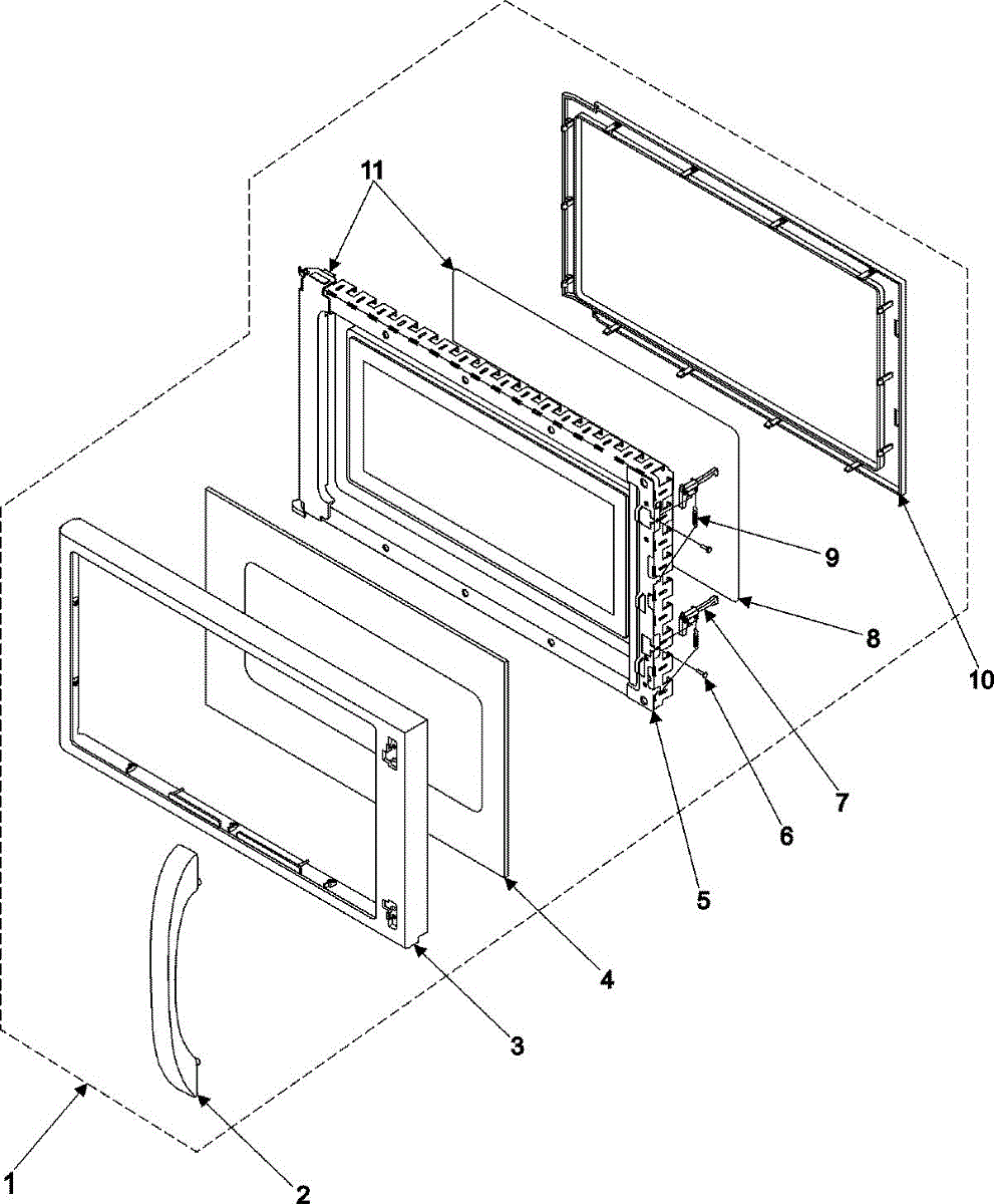 Replaces cracked, broken, or damaged microwave inner door frame. Restores door integrity and proper seal. Essential structural component for door assembly.