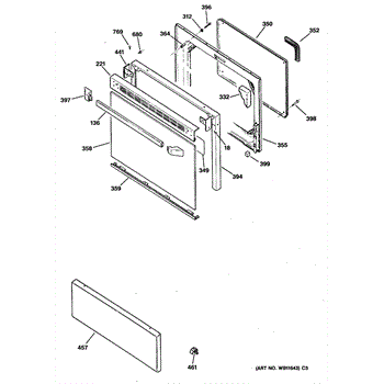 The Bottom Door Trim (BLK) is an OEM part for GE ranges. This black trim piece is located at the bottom of the oven door, providing a finished look while also protecting the door's edge from damage and wear.